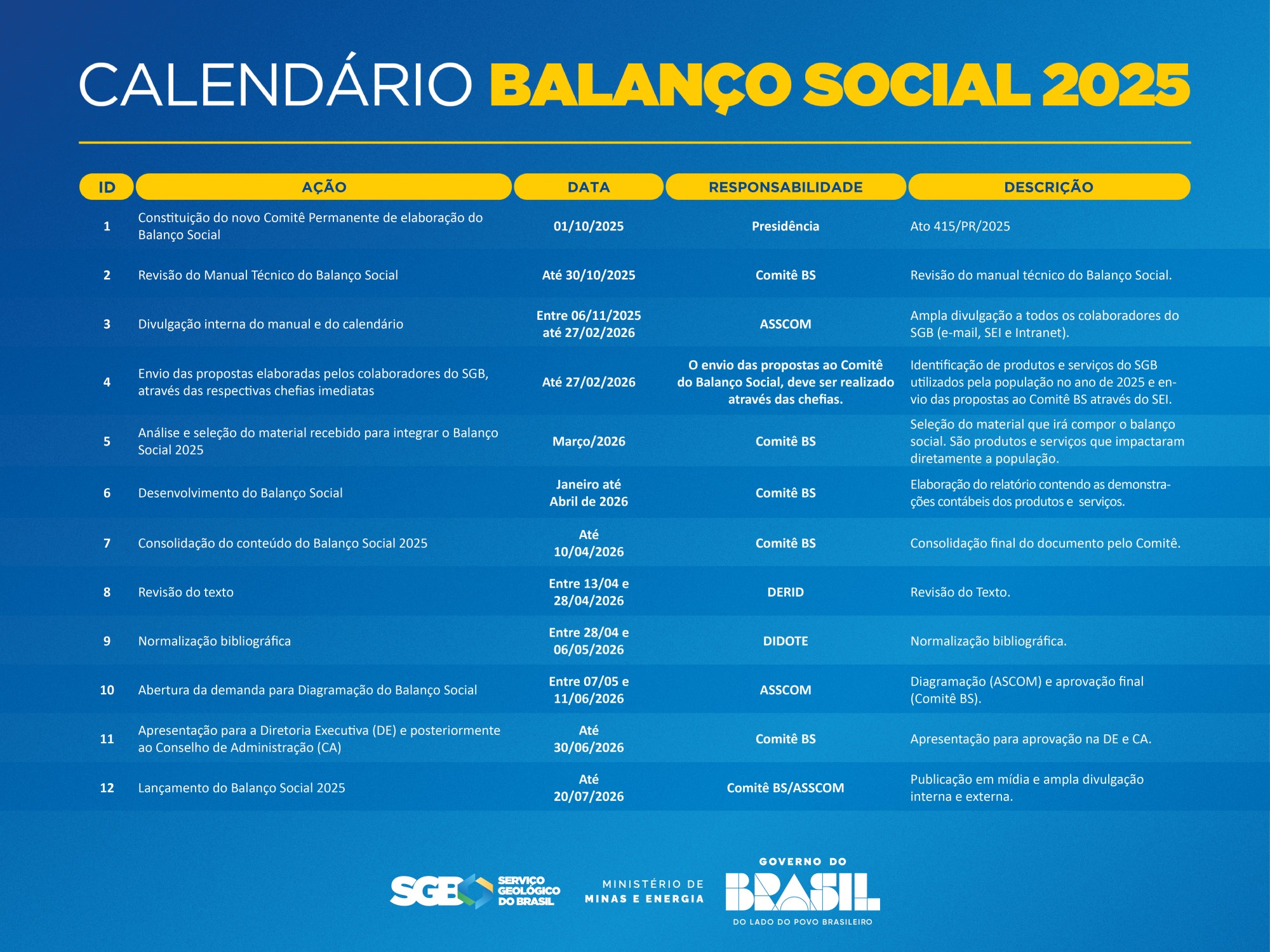 Consulte as outras edições de BS do SGB: Balanço Social.