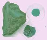 Um dos minerais usados para obtenção de tinta verde é a malaquita, um carbonato básico de cobre que tem sempre essa cor. O pigmento conhecido como verde do tirol é formado por glauconita - uma série de silicatos terrosos do grupo das micas - ou por celadonita - silicato de potássio, ferro e magnésio, também verde e também terroso, igualmente do grupo das micas. Pintores famosos, desde Da Vinci até Picasso, usaram um famoso pigmento verde obtido com o mineral volkonskoíta, um silicato hidratado do grupo da esmectita.