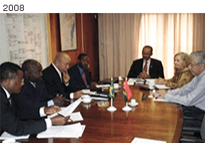 Em janeiro de 2008, uma comitiva do governo de Angola formada por representantes da Casa Civil do Ministério de Energia e Minas e o diretor-geral do IGEO, estiveram no SGB, Rio de Janeiro, objetivando discutir a formulação do Plano Plurianual de Desenvolvimento Econômico e Social de Angola. Na reunião abordou-se a viabilidade de colaboração mútua nos temas: (i) formulação do Plano Plurianual para o Governo de Angola - PPGA, visando à retomada do crescimento econômico-social do país, após longo período em guerra; (ii) discussão sobre a reorganização do IGEO e a sua inserção no PPGA; e (iii) cooperação técnica SGB – IGEO. Na oportunidade, o lado angolano submeteu à discussão uma proposta de Memorando de Entendimento - MOU. Após revisão pelo SGB, o MOU foi remetido ao IGEO.