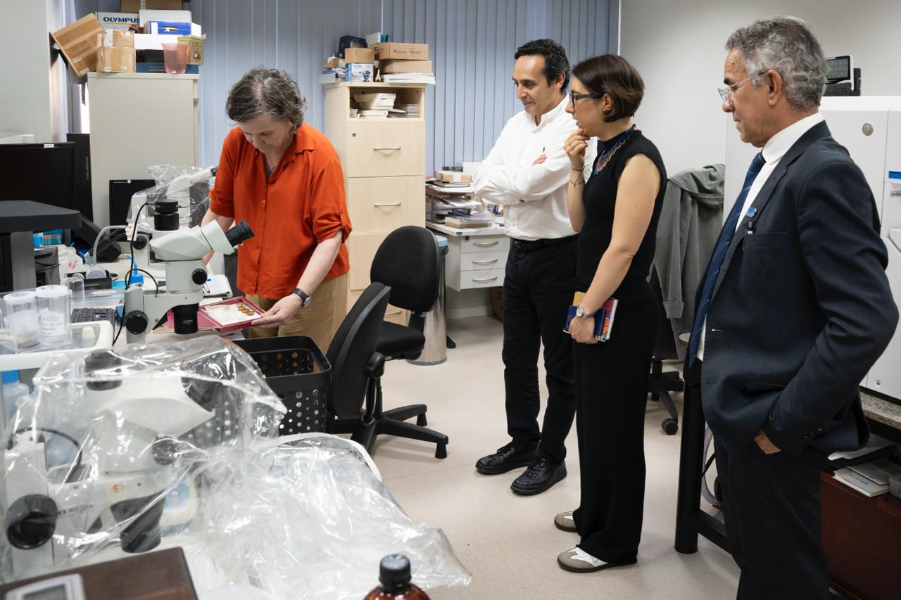 Após a assinatura do acordo, o diretor geral e a diretora de Recursos Minerais do SGC, Juanita Sierra Salamanca, visitaram as instalações do SGB. Na ocasião, conheceram o Laboratório de Microanálises da instituição.