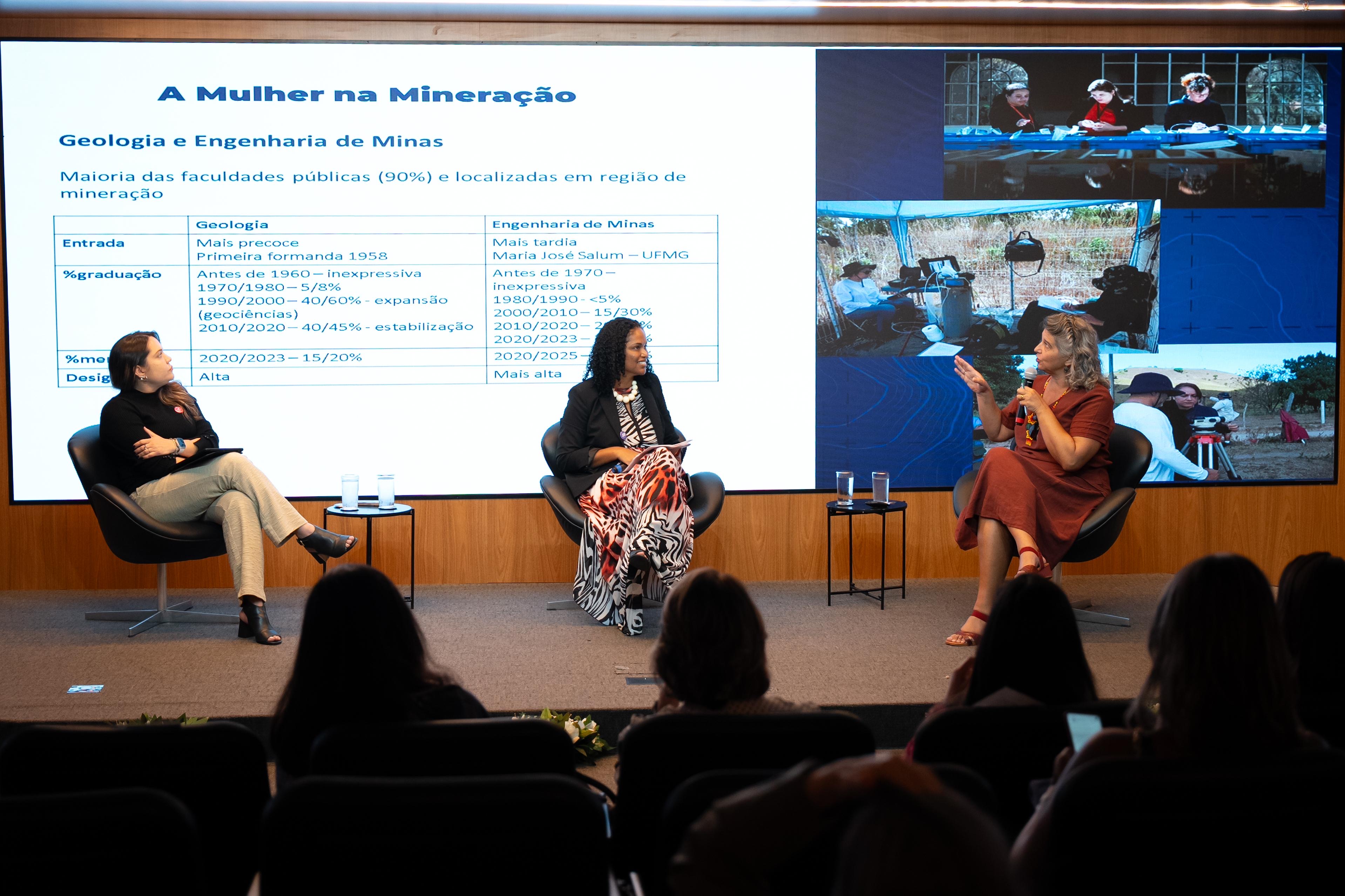 No encontro, a diretora de Hidrologia e Gestão Territorial do Serviço Geológico do Brasil (SGB), Alice Castilho, destacou o avanço da participação feminina na instituição e no setor mineral. Alice Castilho participou do painel Protagonismo feminino: Mulheres na liderança, redesenhando a cultura da mineração brasileira, mediado pela diretora do Departamento de Desenvolvimento Sustentável na Mineração, Julevânia Olegário.