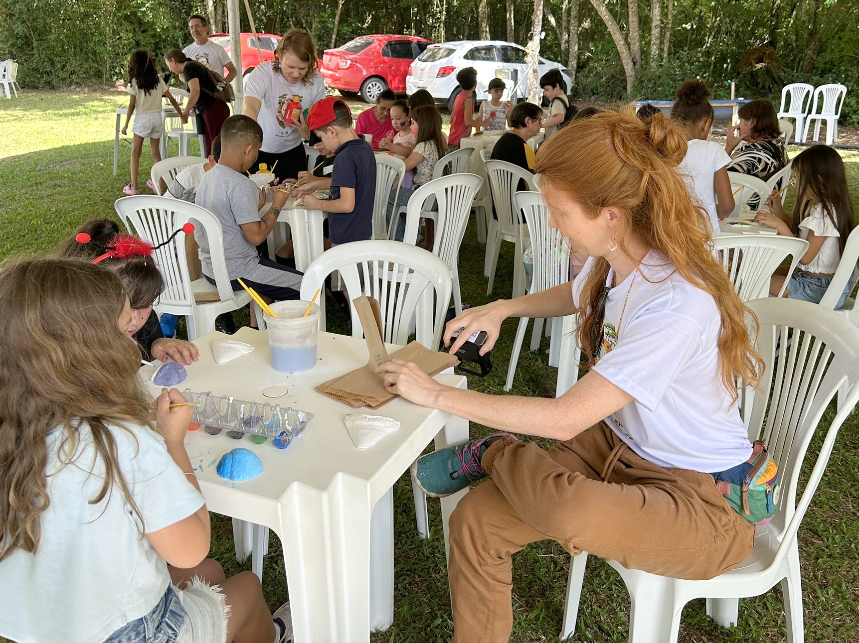 Em sua terceira edição em 2025, o espaço dedicado à educação infantil reuniu, além do SGB, instituições como Embrapa Clima Temperado, Universidade Federal de Pelotas (UFPel) e Universidade Federal do Rio Grande (FURG) para oferecer uma programação lúdica e educativa a cerca de 600 crianças. Dividida em sete estações interativas, a Ciranda abordou temas como geologia, água, solos, insetos, alimentação saudável, plantas não convencionais (PANCs) e arte, com um formato inovador e imersivo, onde as atividades foram realizadas ao ar livre, na Estação Ecológica da Cascata, combinando brincadeiras, arte e ciência em um ambiente natural.