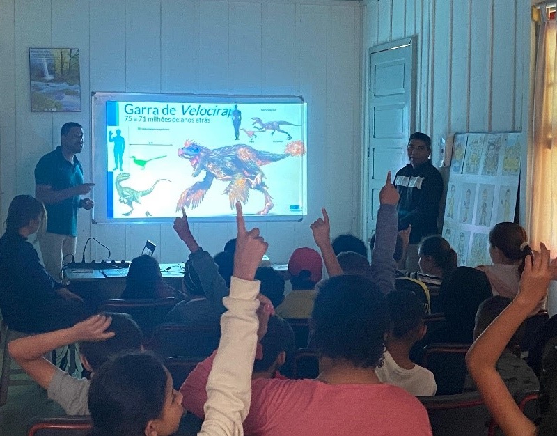 Em reconhecimento por suas importantes atividades de divulgação científica, o SGBeduca foi convidado para o lançamento do livro “Guia Ilustrado da Paleobiota de Itaboraí”, ilustrado por Felipe Alves Elias, obra que apresenta a notável diversidade de fósseis da Bacia de São José de Itaboraí (RJ). A pesquisadora Juliana Maceira Moraes representou o Programa no evento, que aconteceu no dia 5 de dezembro no Salão Nobre da Decania do Centro de Ciências Matemáticas e da Natureza da Universidade Federal do Rio de Janeiro (CCMN/UFRJ), no Rio de Janeiro (RJ), reunindo a comunidade acadêmica, de divulgadores científicos e o público geral.