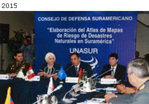 Em abril de 2014, em atendimento ao convite do Secretario Executivo Pró-Tempore do CDS, do Peru, representantes do SGB (diretor e técnico) participaram da Reunião temática “Elaboração do Atlas de Mapas de Risco de Desastres Naturais na América do Sul”, realizada em Lima, Peru. Além do Brasil os seguintes países membros participaram do evento: Argentina, Chile, Equador, Paraguai, Peru, Suriname e Venezuela.
