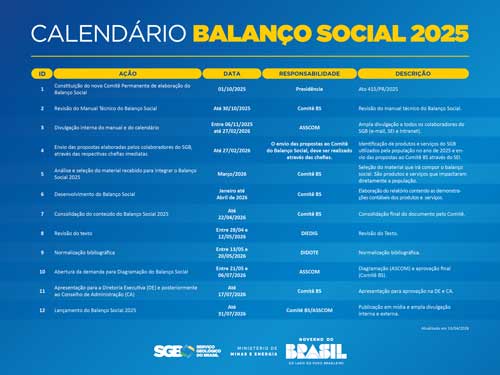 Consulte as outras edições de BS do SGB: Balanço Social.