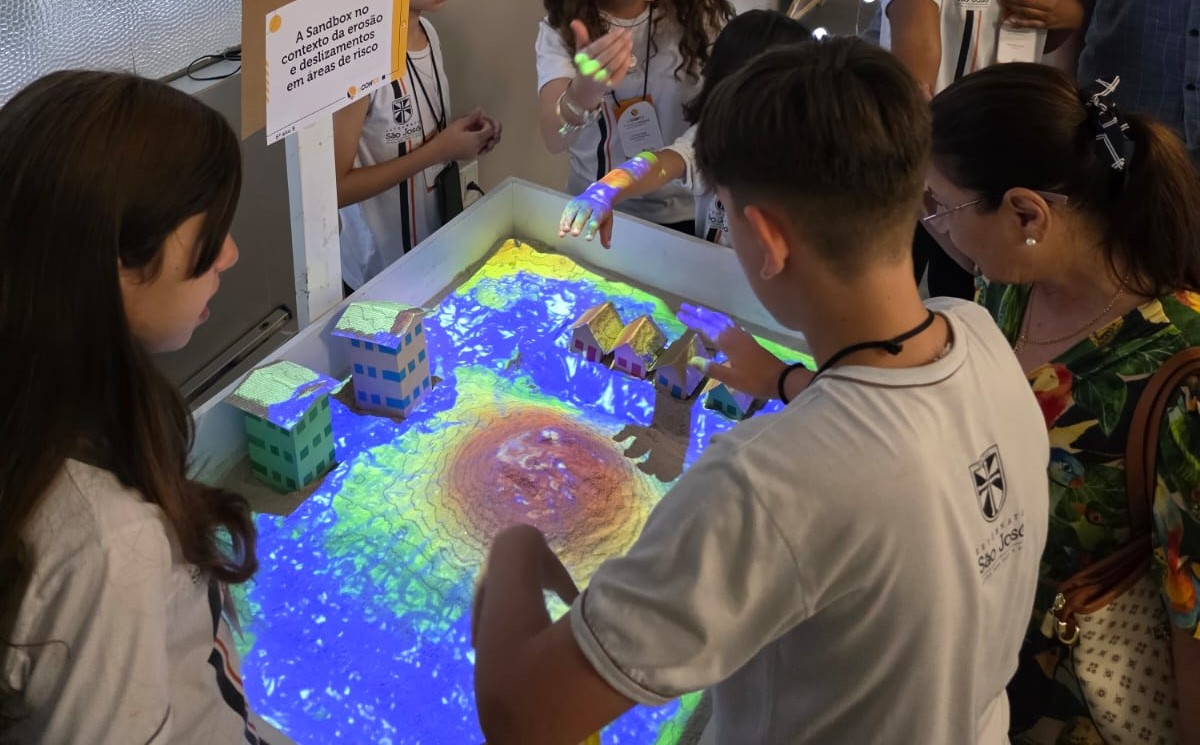 Já em Goiânia (GO), o SGB participou de atividades no Colégio Externato São José. Técnicos da equipe do SGBeduca ministraram uma aula e capacitaram os alunos do 6º ano do Ensino Fundamental para realizarem apresentações sobre processos erosivos na “IV Mostra de Redesign do Conhecimento”, evento educativo organizado pela escola e realizado na própria instituição. A feira ocorreu no dia 27 de setembro e foi considerada um sucesso. Nas apresentações, os alunos utilizaram a Sandbox, a caixa de areia de realidade aumentada que simula o relevo terrestre e puderam manusear aquários equipados com areia, argila e material misto, simulando as questões de permeabilidade e impermeabilidade do solo.