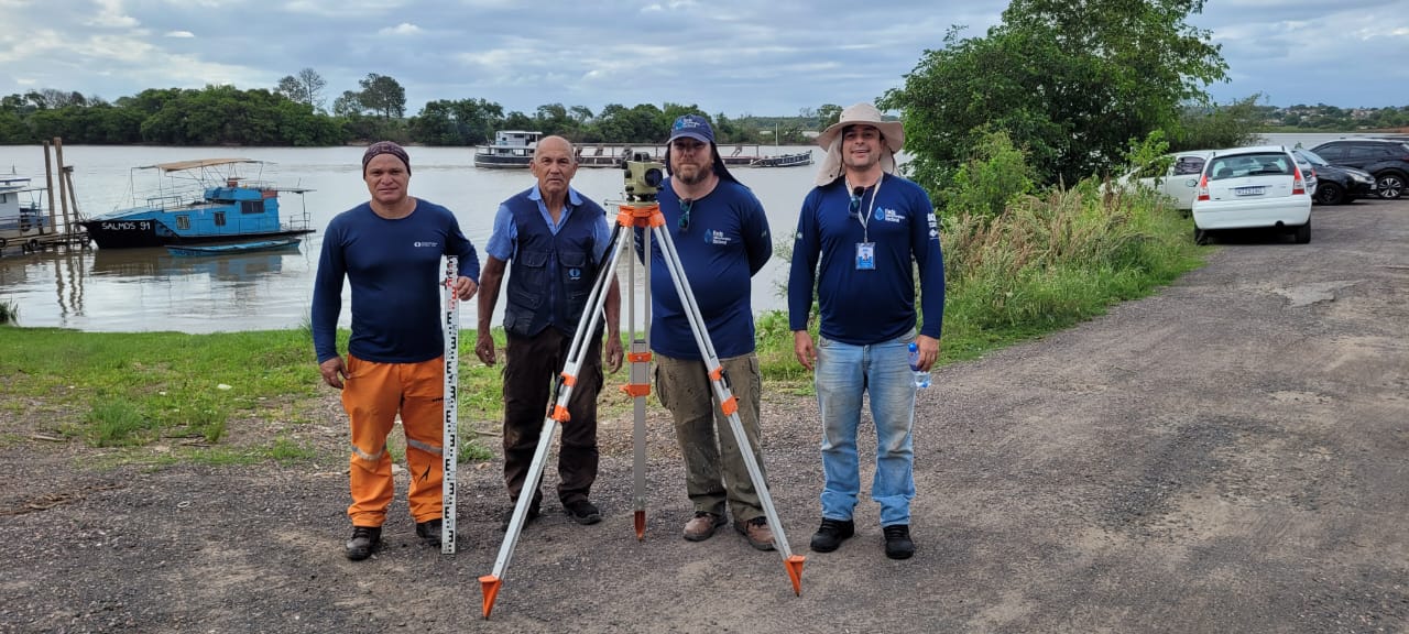 Durante a ação, a equipe do SGB, formada pelo pelo pesquisador Francisco Marcuzzo e pelos técnicos Cezar Petersen, Ricardo Moreira e Juarez Marin, realizou também o levantamento e a marcação física das cotas históricas das duas maiores inundações registradas na cidade: 12,75 m, em 03/05/2024; e 13,50 m, em 06/05/1941.
