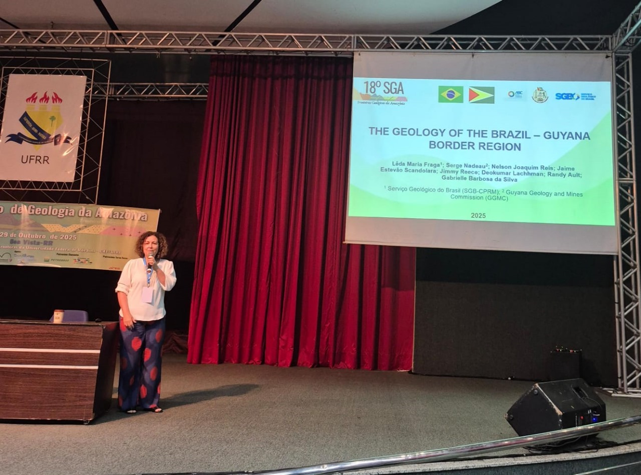 A pesquisadora em geociência Lúcia Travassos, assessora da DGM, apresentou duas palestras no evento, intituladas: “Arcos magmáticos continentais do sudeste do Escudo das Guianas: registros do estágio acrescionário da orogênese riaciana" e "Minerais críticos e estratégicos para transição energética: iniciativas do Serviço Geológico do Brasil na Amazônia".