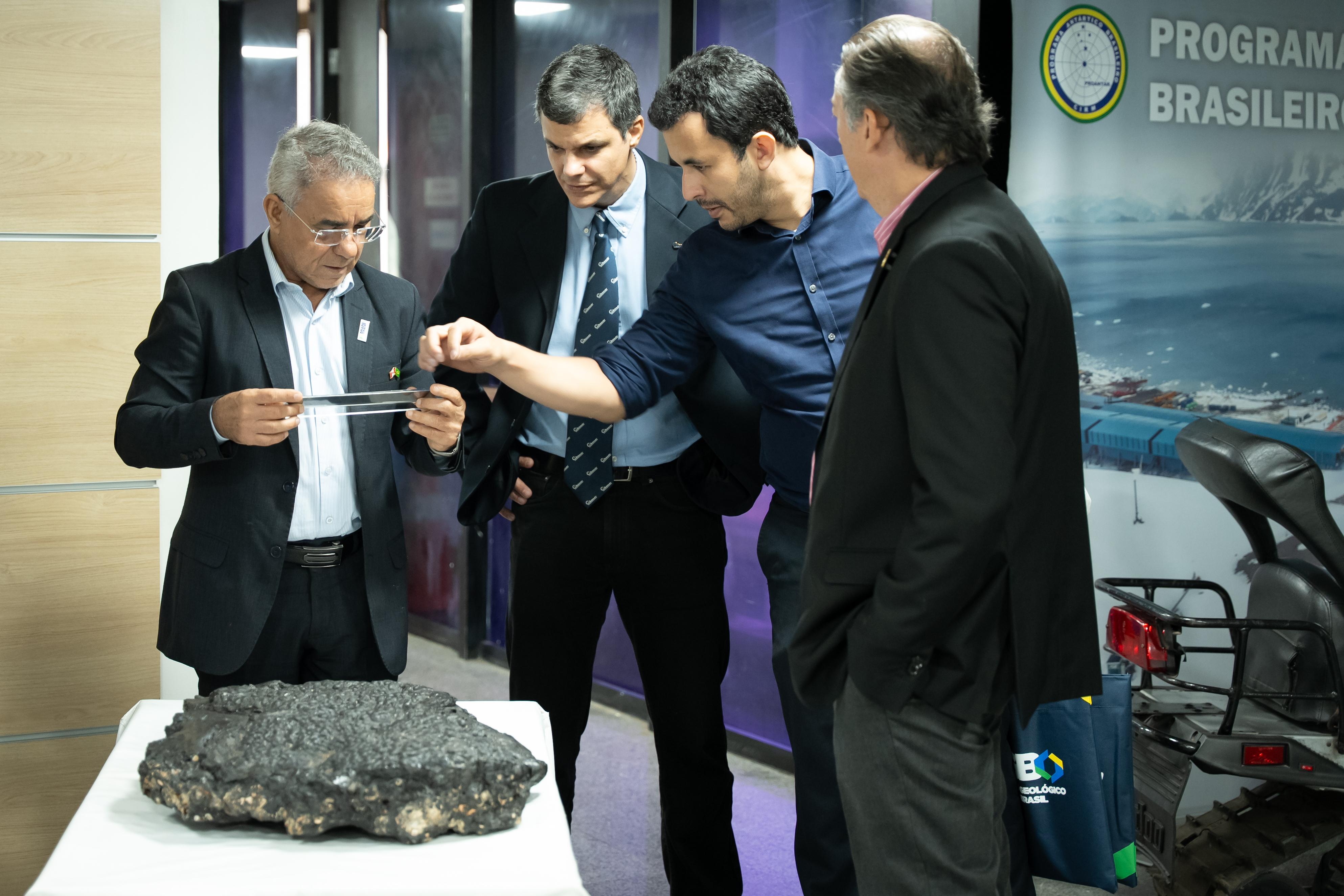 Silveira destaca a importância desse momento para fortalecer a cooperação técnica entre o SGB e a Marinha do Brasil "A entrega das amostras é uma forma de reafirmar a grandiosidade dessa parceria representada pelas belíssimas amostras que serão expostas no saguão da Marinha do Brasil, na SECIRM”, disse. A reunião foi também uma oportunidade para conversar sobre novas ações conjuntas e estratégias de interesse nacional.