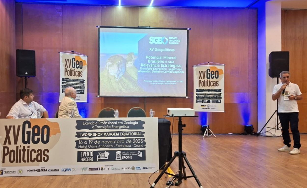 O diretor-presidente interino do Serviço Geológico do Brasil (SGB), Valdir Silveira, participou na manhã dessa segunda-feira (17/11) da mesa de abertura do XV Geopolíticas, em Fortaleza, no Ceará. A atividade reúne especialistas, gestores públicos e representantes do setor mineral para discutir tendências, desafios e estratégias relacionadas ao território, recursos naturais e desenvolvimento.
